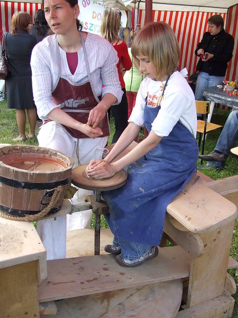 'Ogniem Malowana' z przyjemnością przyłączyła się do festynu integracyjnego z pokazami garncarskimi - koło nie przestawało się kręcić, a sprzedane ceramiczne aniołki zasiliły kasę stowarzyszenia.