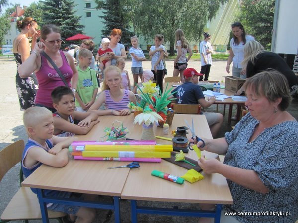 Dzieci między innymi własnoręcznie wykonywały kartki metodą pergamano, robiły kwiaty z bibuły i malowały znane z bajek postaci. Dużą frajdę sprawiła także nauka graffiti. Z tą sztuką dzieci zapoznawali Mateusz Bieluczyk i Maciej Szwaja. Kolejną atrakcją jarmarku był pokaz grupy break - dansowej "No Stres", którzy jako jedyni w Giżycku reprezentują ten gatunek tańca. Na zaproszenie Ewy Ostrowskiej, dyrektora Centrum Profilaktyki na imprezę przybyli także przedstawiciele Izby celnej z Ełku. Goście przywieźli ze sobą psa, który pracuje przy wykrywaniu przemycanych narkotyków i papierosów. Pokazy sprawności psa przyciągały uwagę większości dzieci przybyłych na plac przy Sikorskiego.