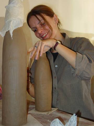 Poświęciłam się doskonaleniu garncarstwa - toczeniu na kole - wspomina Grażyna Kopeć - po kursie zaczęłam myśleć o otwarciu własnej pracowni. Takie były początki "Ogniem Malowana"
